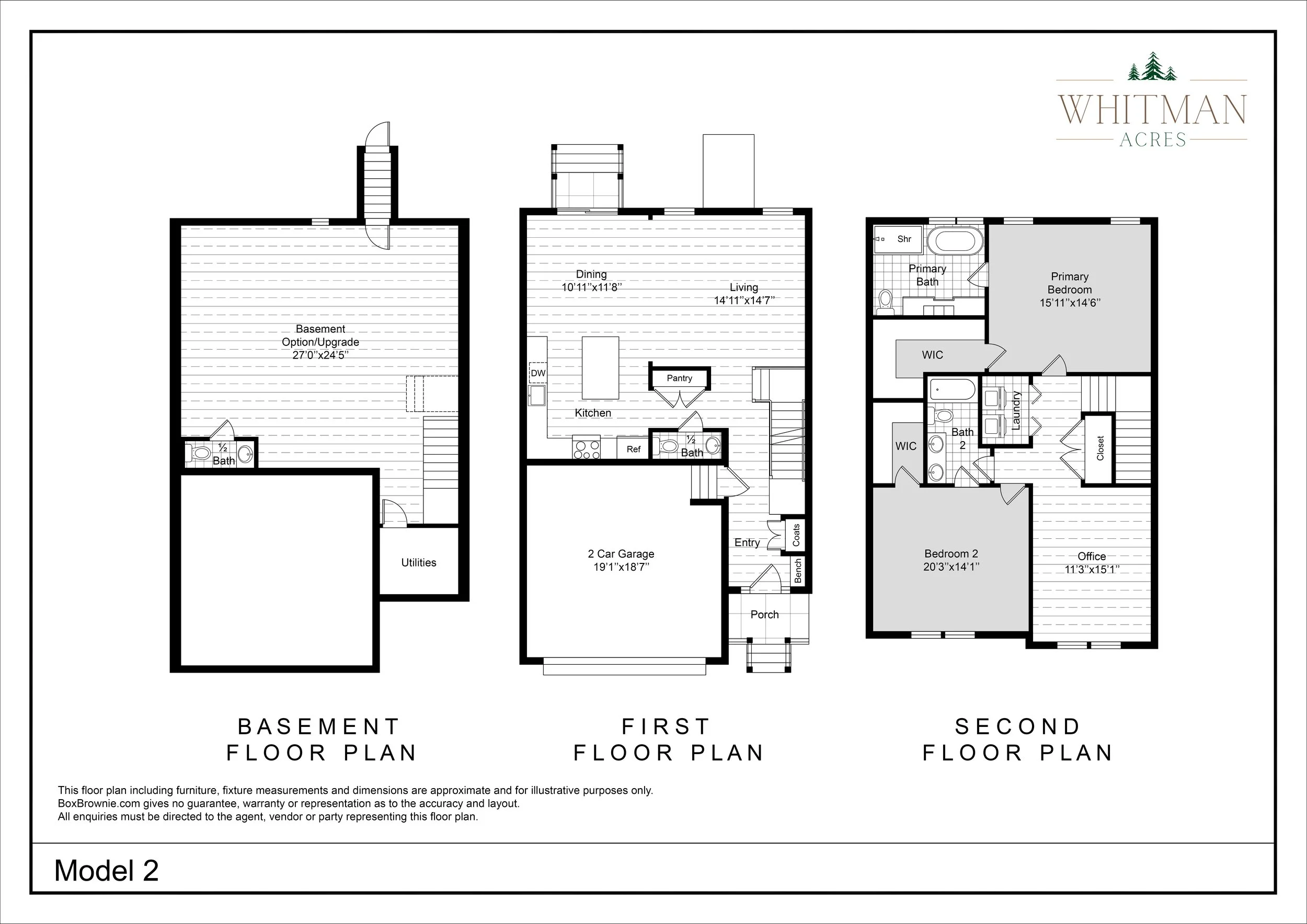 2 bedrooms + home office, 2.5 baths, private outdoor space, 2-car garage.